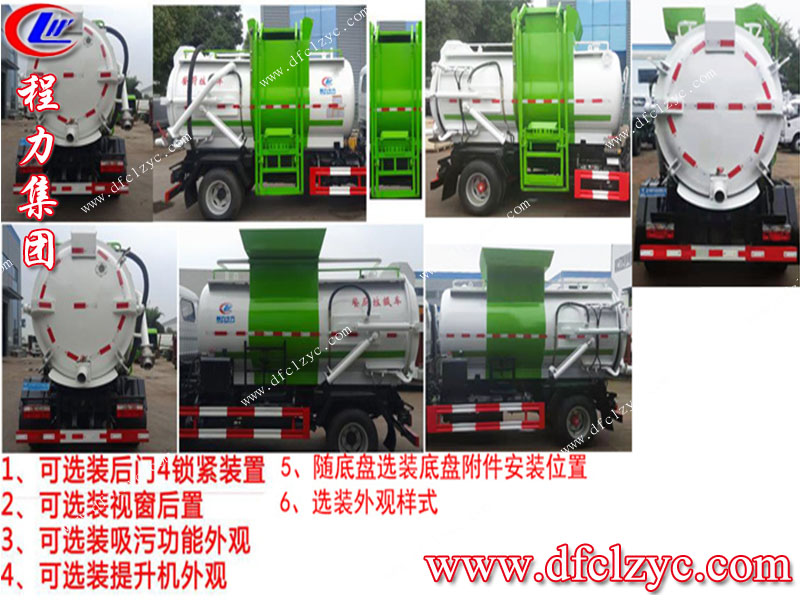餐廚(泔水)垃圾車:餐廚垃圾車是垃圾車中的一種,是用于收集和運(yùn)輸生活垃圾、食品垃圾(泔水)及城市淤泥的專用車輛。具有裝、卸垃圾自動化程度高、密封性好、操作簡便、無污水泄露和異味的散發(fā)等特點(diǎn)。餐廚垃圾車能將垃圾經(jīng)過強(qiáng)有力的推板擠壓,然后固液分離,待裝滿后送至餐廚垃圾資源優(yōu)化處理廠。整個(gè)過程,實(shí)現(xiàn)自動化。