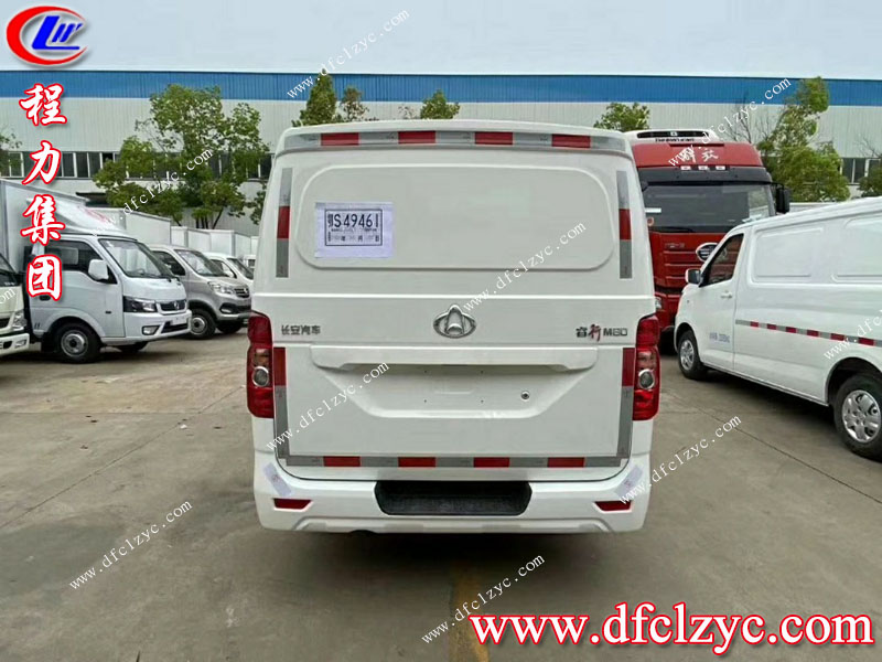 上圖為程力集團(tuán)長(zhǎng)安睿行面包式冷藏車(chē)后視圖