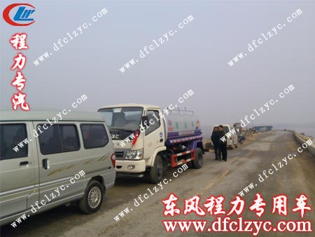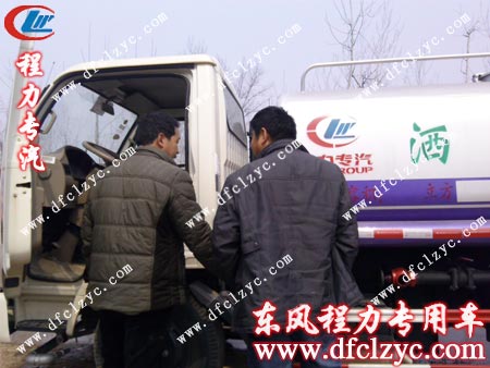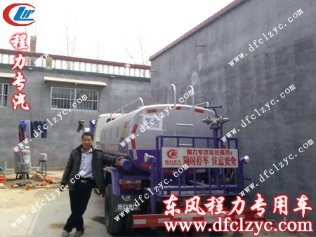 上圖為東風(fēng)勁卡灑水車在湖北程力集團(tuán)廠門口出發(fā)前