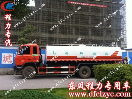 上圖東風(fēng)后雙橋灑水車為我湖北程力專用汽車股份有限公司,采用東風(fēng)公司原裝雙橋后八輪底盤,發(fā)動機為康明斯,210馬力,該灑水車是武漢一家園林綠化公司在我程力公司訂購的,用于綠化帶的澆水灌溉,及路面沖洗,灑水降塵。